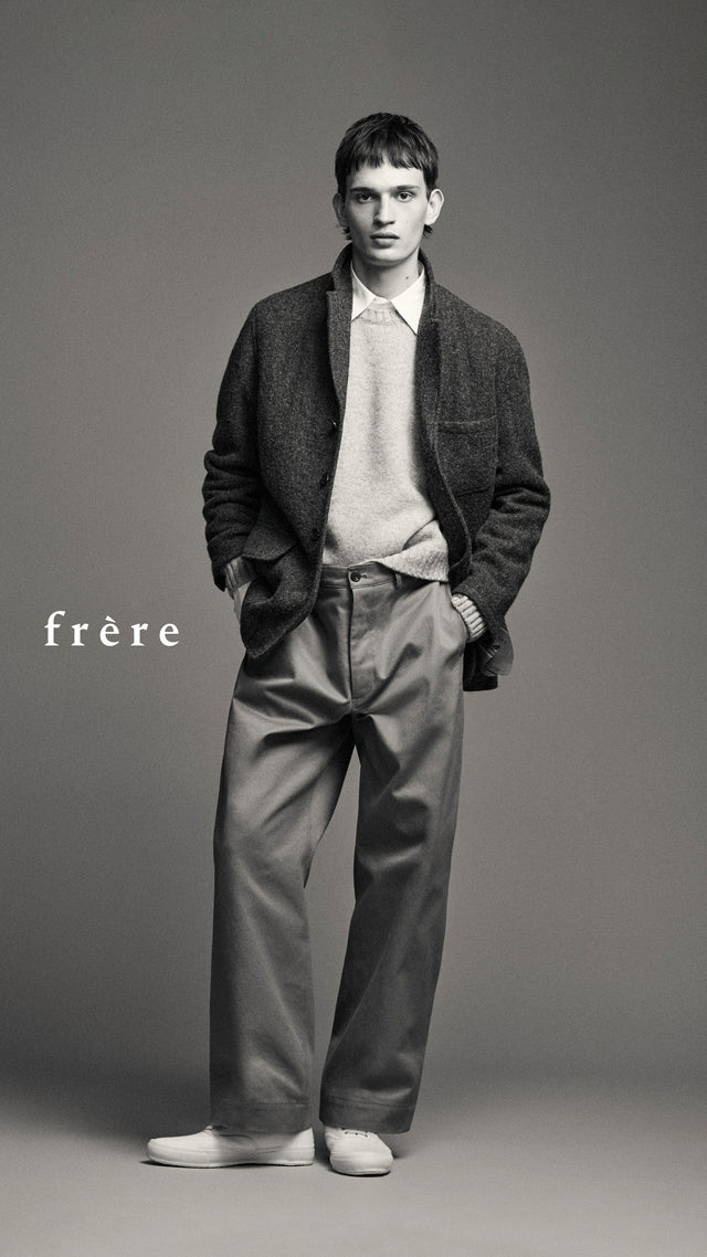« Frère est une collection de vêtements pour hommes. Frère est aussi une idée : s'habiller est un acte culturel qui raconte les films, les albums, les livres que l'on aime. Frère est également une image. Ou plutôt une série d'images. Celle d'un col de chemise assoupli et tordu par le temps. Celle d'un débardeur blanc, maille richelieu, négligemment tombé au pied du lit. Ou encore celle d'un pantalon de ville, en gabardine de laine, cassant généreusement sur une paire de tennis en toile élimée. Frère est évidemment une élégance. Parfois apprêtée, volontiers classique, toujours nonchalante, jamais lisse. Mais Frère est surtout une attitude, masculine, sensible, fantaisiste, discrète, déterminée, souriante, charmante, simple, tour à tour, d'un instant à l'autre. Frère est tout cela à la fois. »