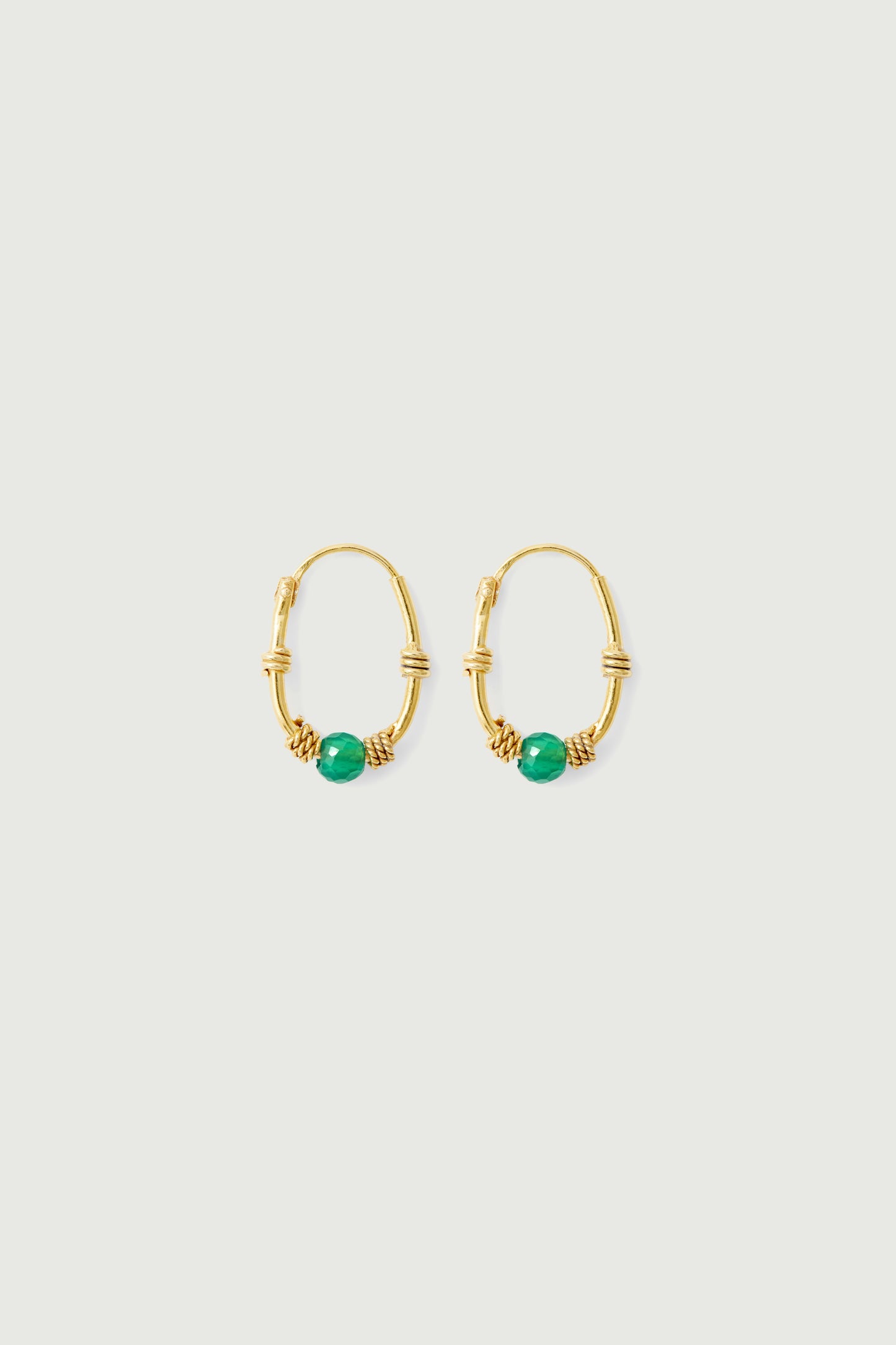 ZINC est une paire de boucles d'oreilles en vermeil, ornée d'une pierre semi-précieuse (onyx vert foncé).