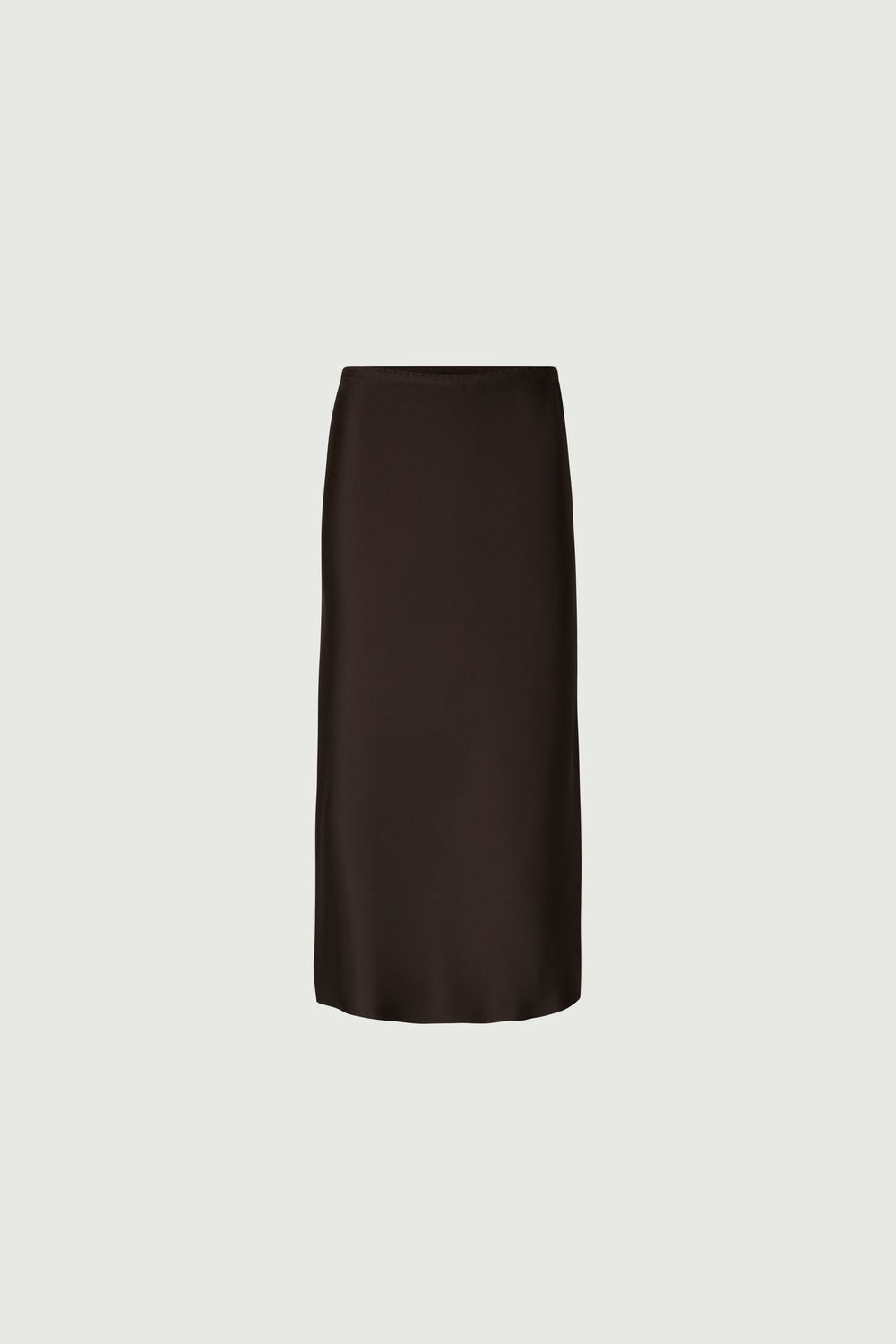 FEVER est une jupe à la taille élastiquée qui permet de la porter plus ou moins haute et de s'adapter à toutes les morphologies. Sa coupe minimaliste met en valeur le tombé liquide de son étoffe fluide et brillante. Une découpe en biais la rend légèrement évasée. Un incontournable du vestiaire Soeur décliné chaque saison.