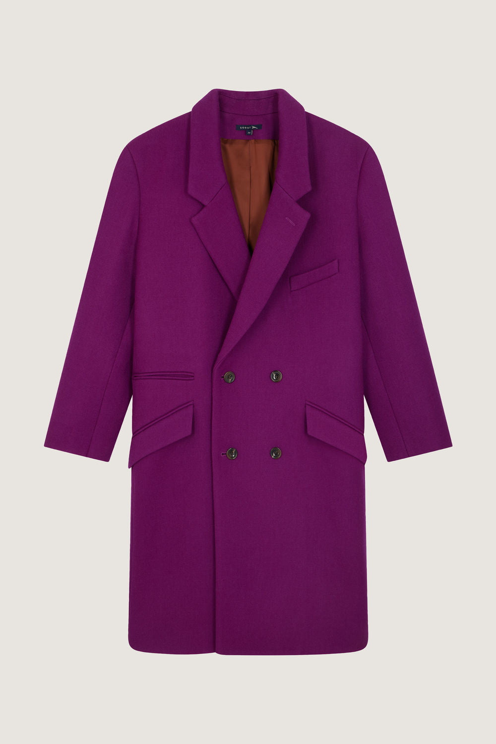 Manteau en sergé de laine vierge fushia