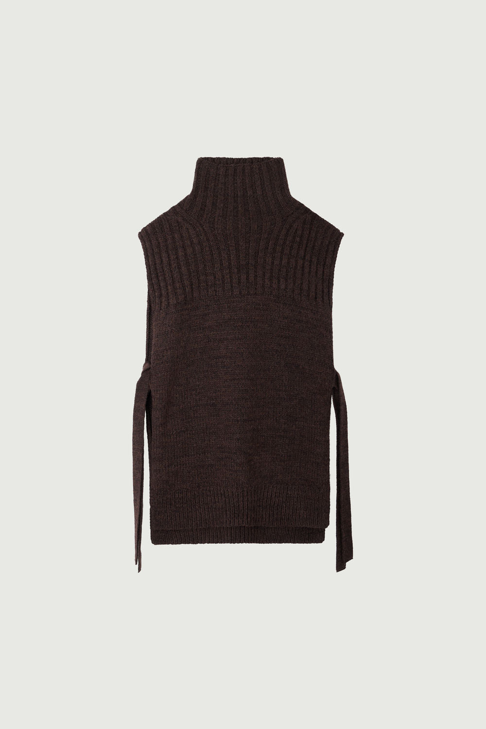 BIARRITZ est un plastron oversize, tricoté dans un fil de laine vierge. Rendu visuel par un effet de côtes, des liens sur les côtés se portent ceinturés pour marquer la taille, ou laissés suspendus. Un vêtement idéal pour réchauffer une tenue, tel une robe en soie ou une chemise liquette en coton. Il se distingue par un col montant à porter très haut pour se couvrir le cou.