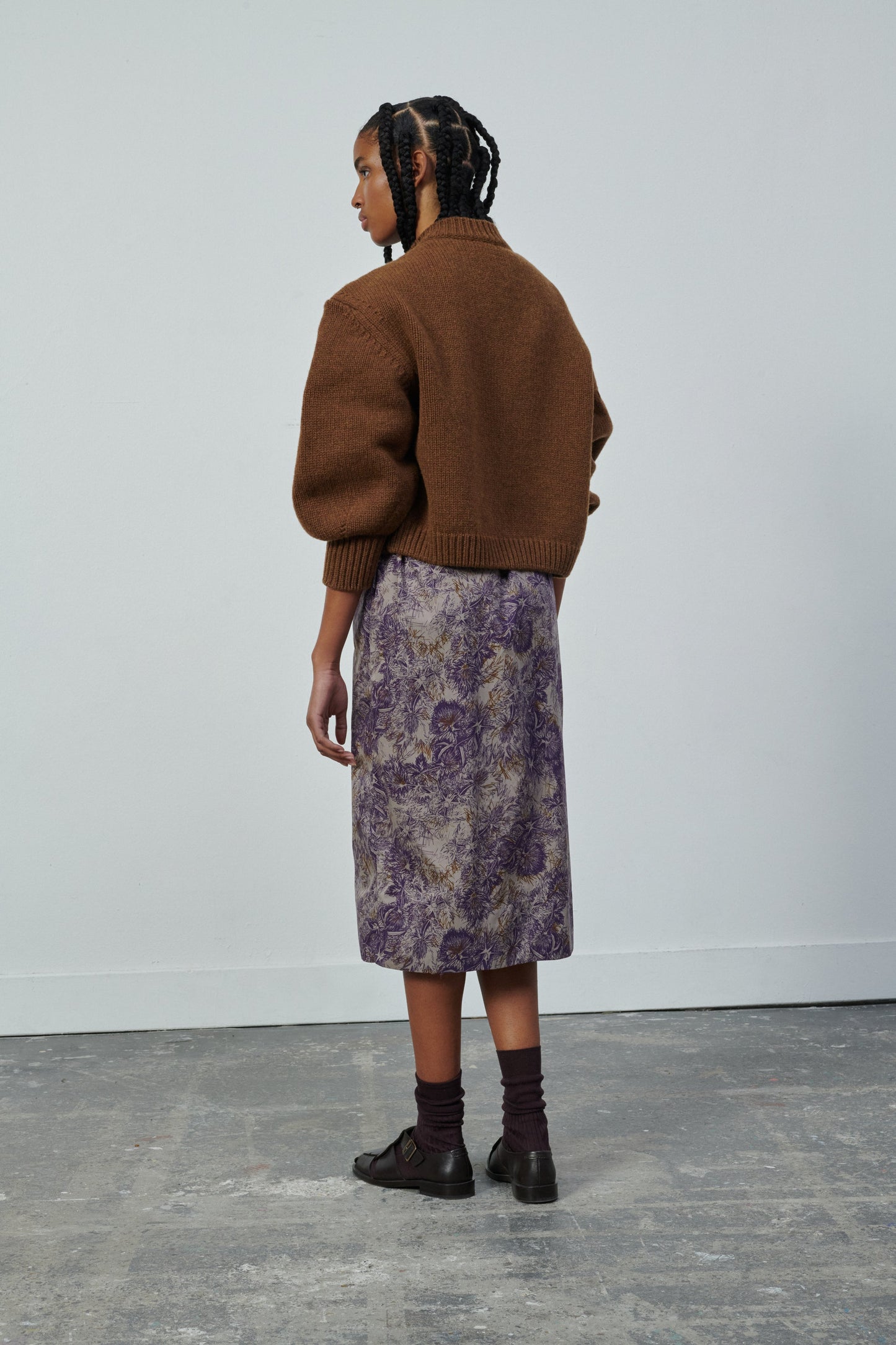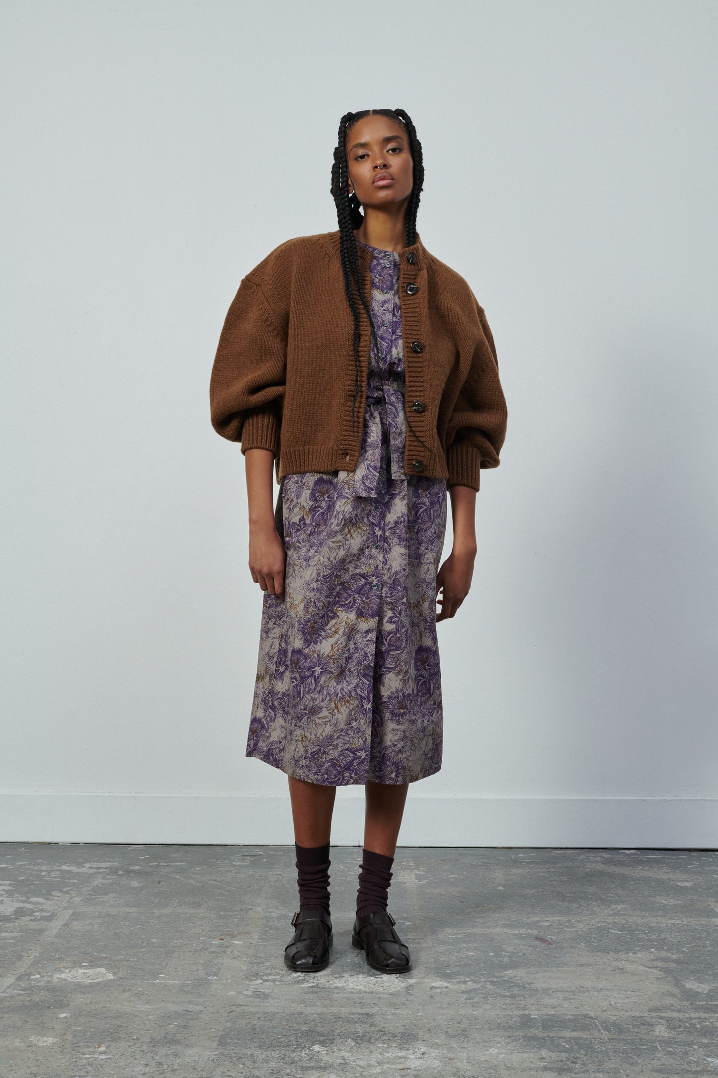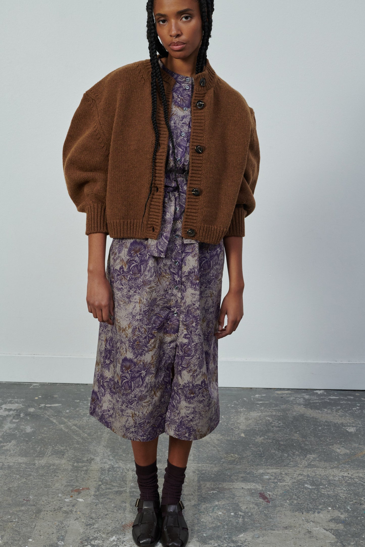 Robe en popeline de coton imprimée chataigne/violet