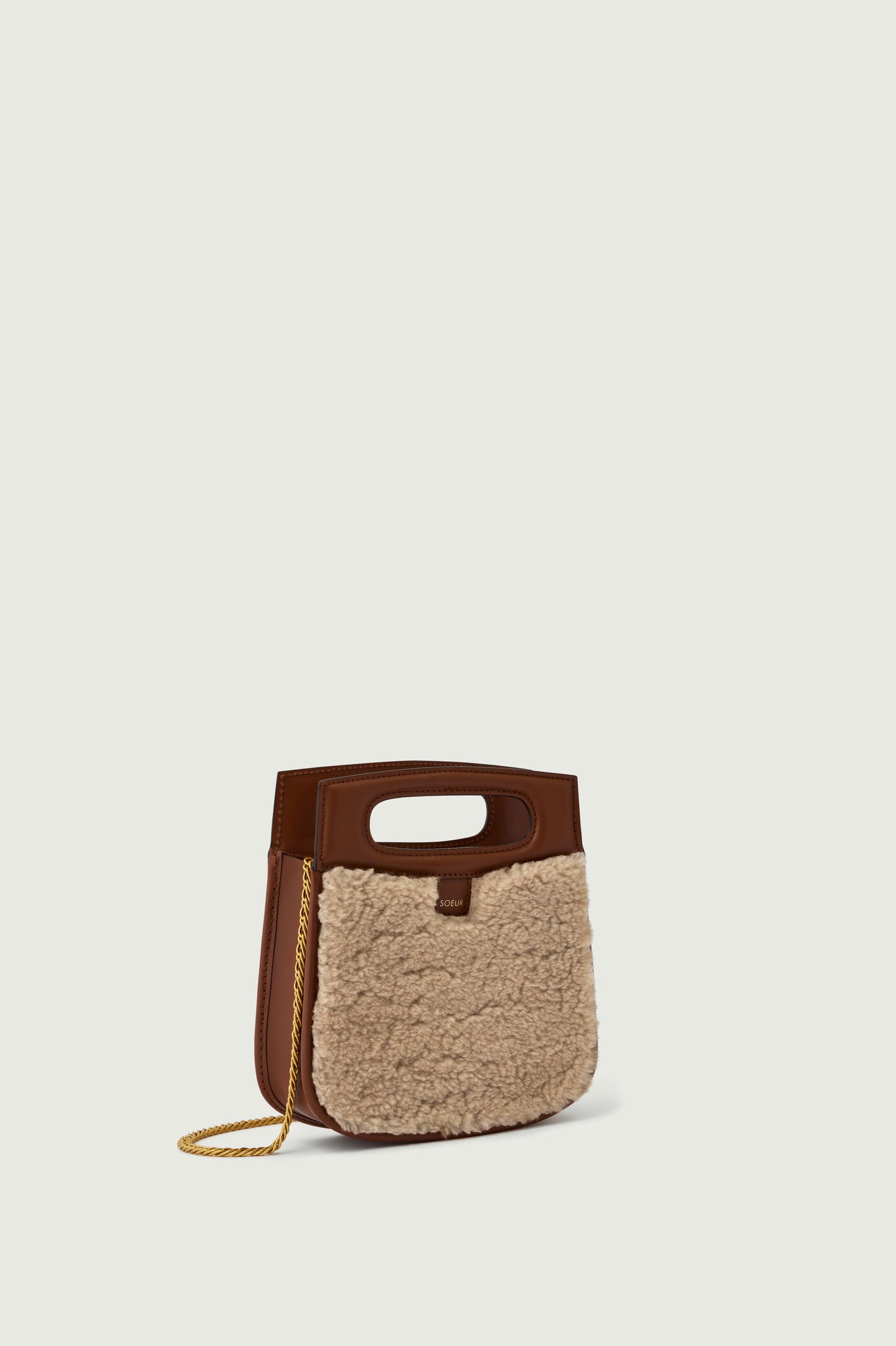 sac cheri mini Petit sac en cuir lisse naturel et shearling sable
